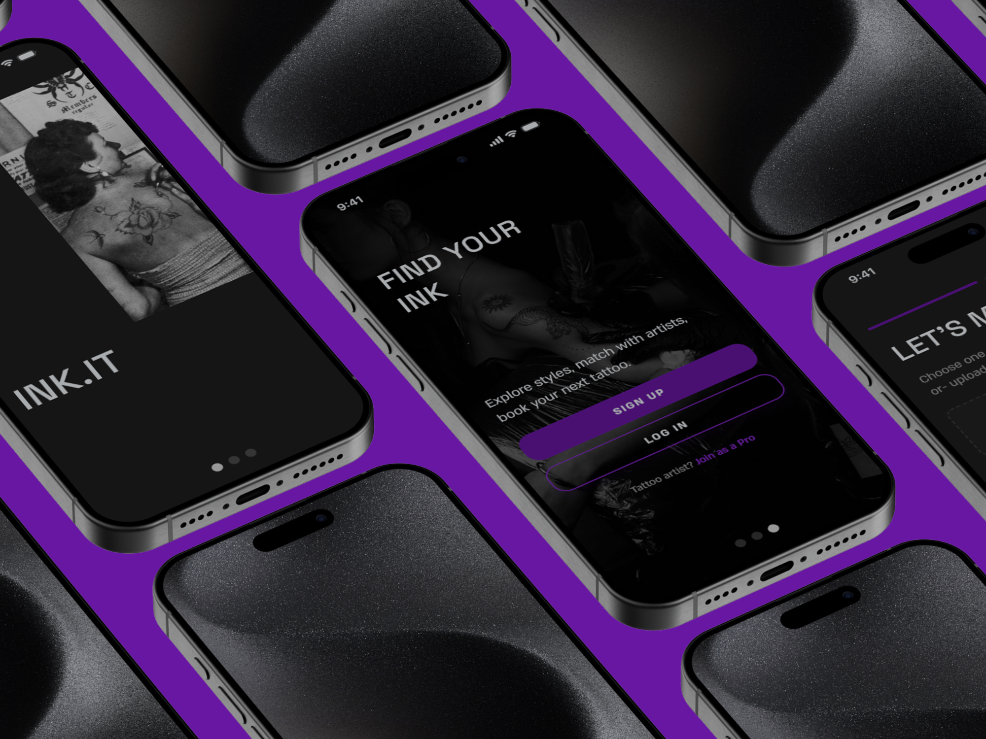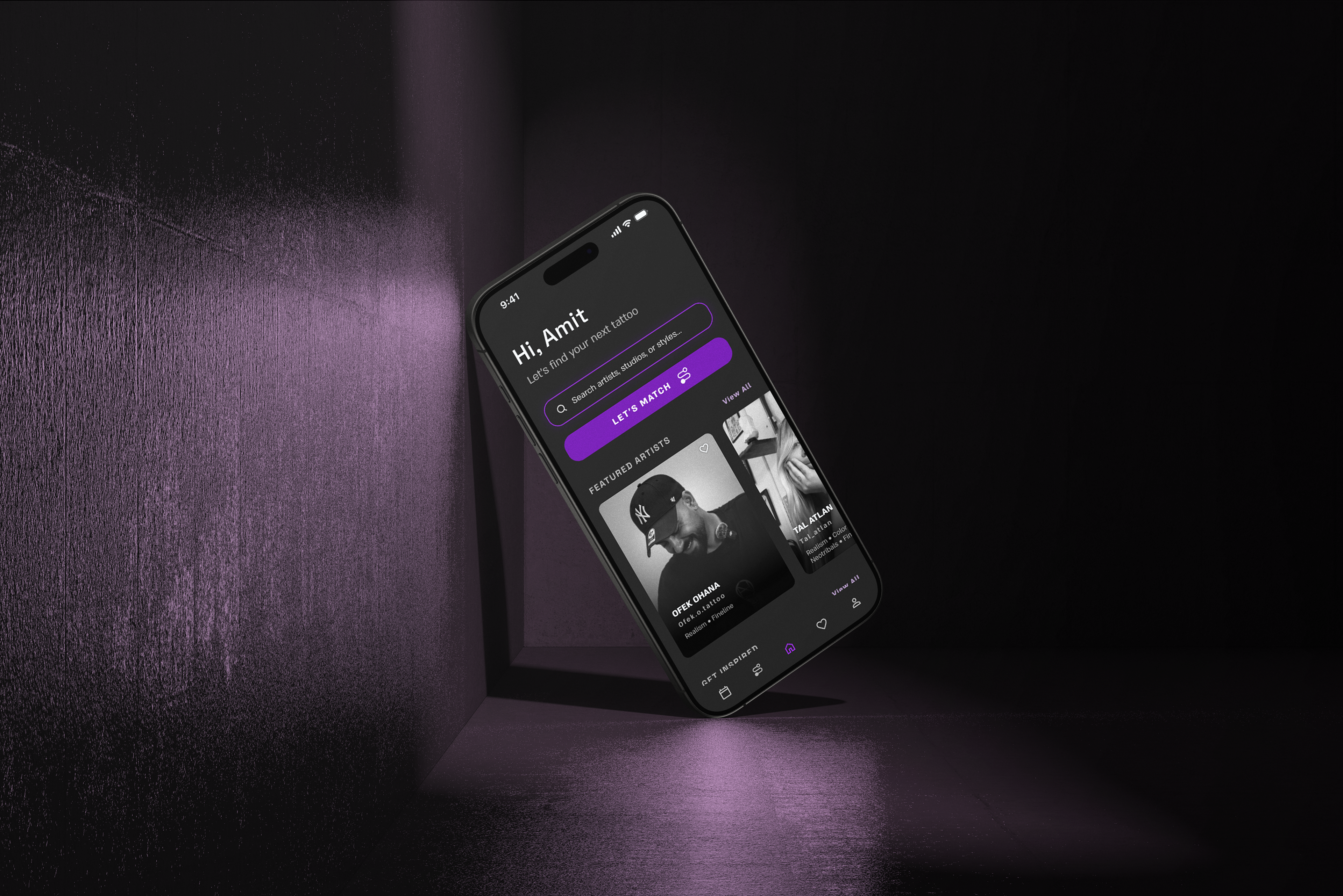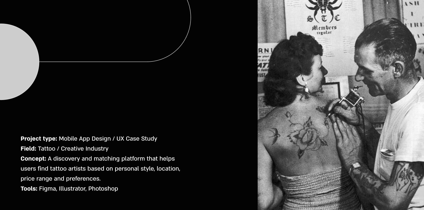 A UX/UI project focused on improving the way users discover and book tattoo artists. The platform matches users with artists based on style and preferences, combining a clear, structured experience with a distinctive visual identity.